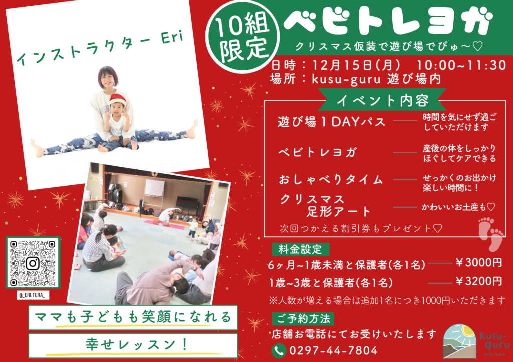 クリスマスベビトレヨガに手足型アート♡クスグルキッズパーク1DAYパス付き